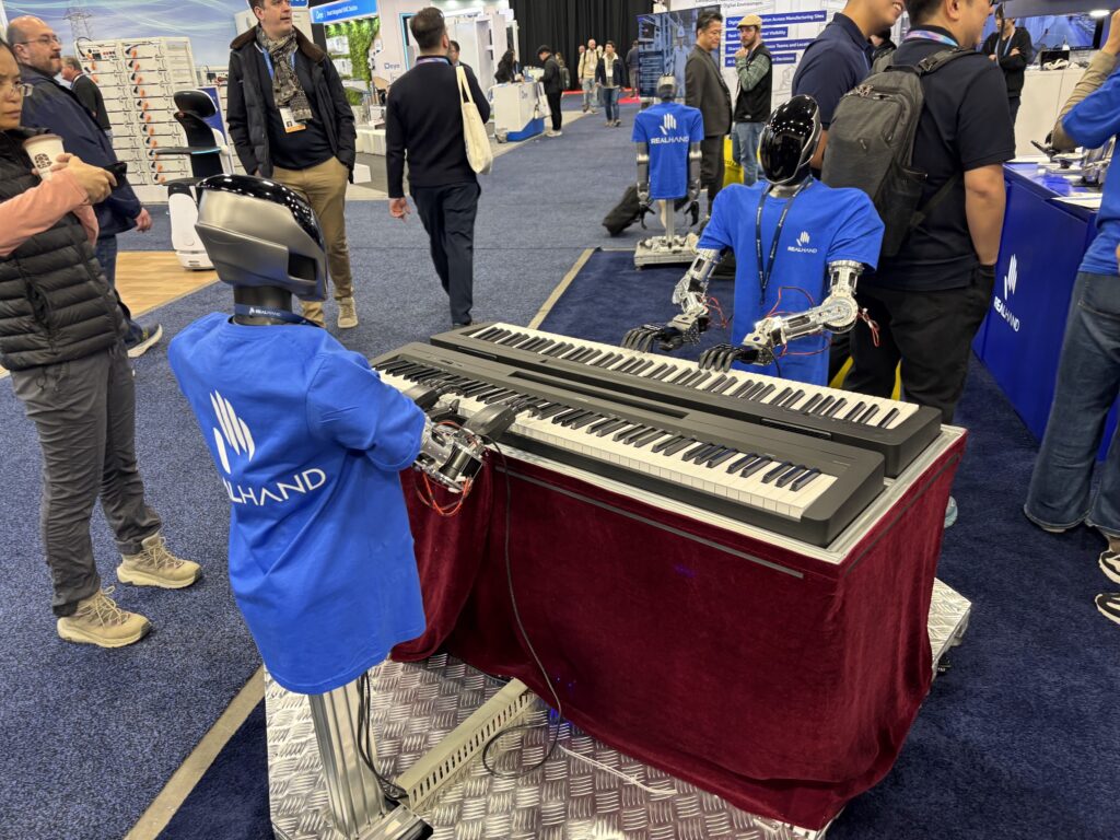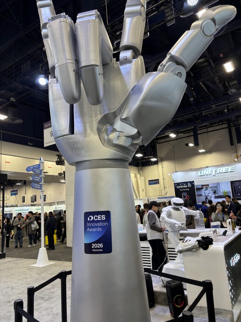 今年のCESはAI、特に人型ロボット、もしくは物理AIに注目の集まるイベントだったと思います。感覚的には深センのロボットイベントを後追いしているような感じです。人が集まっていたのは深センの有名なロボットベンチャー、UBTech(リングで人とロボットが対峙)なのですが、多くの出品ロボは、上の写真のような足なし、車輪駆動で手作業を売りにしているものが多いです。